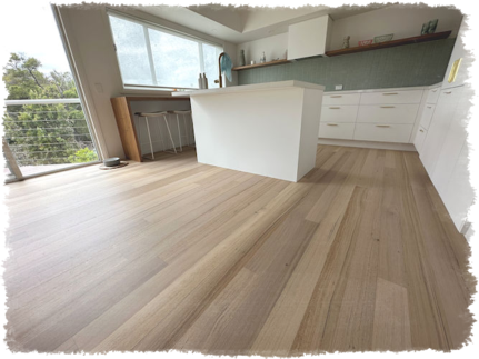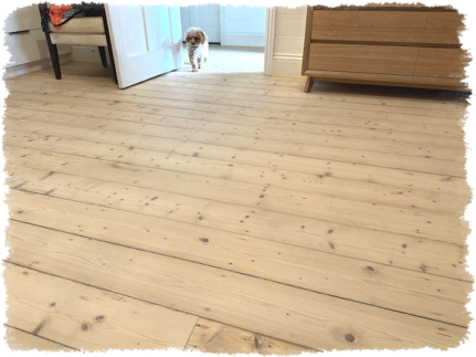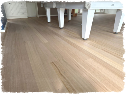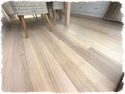 We use the Bona System because the white pigment is added to the sealer. This is applied directly to the raw timber and absorbs into the soft and hard grain, giving a natural look and giving the boards individuality. We then apply the clear top coats as a normal process.