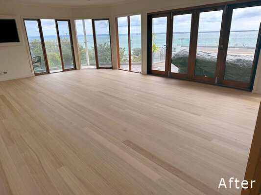 With large windows and open plan living our common timbers like Tasmanian Oak and Vic Ash will yellow overtime from UV light exposure.